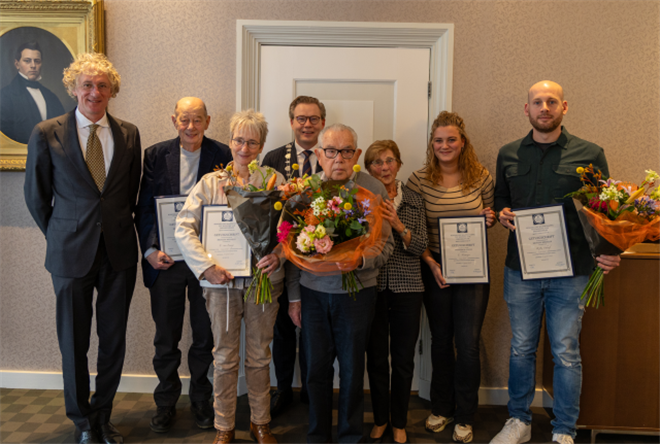 Een passerende fietser Esther van Lierop sprong in het water en haalde de bewusteloze drenkeling boven water. De partner van Van Lierop belde 112. Vervolgens boden ook twee suppers hun hulp aan en trokken de drenkeling op hun plank. Het betreft Eva Niemeijer en Rick Schaaf. Met de hulp van de inmiddels aangekomen hulpdiensten werd het slachtoffer op de kant gebracht en met spoed naar het ziekenhuis vervoerd. De Maatschappij bekroont de redders met een bronzen medaille. |