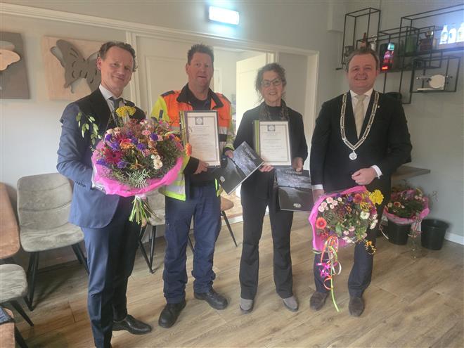 De heer Koster (53 jaar) is op dat moment in de buurt aan het werk als medewerker van Rijkswaterstaat. Terwijl hij in gesprek is met een bestuurder van een defecte camper, hoort hij plotseling een harde klap achter zich. Wanneer hij zich omdraait, ziet hij een auto over de kop slaan en het talud tussen beide rijbanen afglijden. Hij weet dat er daar water is en dat de situatie ernstig kan aflopen. Met gevaar voor eigen leven steekt hij de rijbaan over en gaat over de middengeleider het talud af. Eenmaal onderaan het talud ontdekt hij dat hij de auto aan het zinken is. Hij vraagt de eigenaar van de camper om 112 te bellen en gaat het water in om de inzittenden van de auto te redden. De auto is inmiddels met de neus naar voren gezakt. Ondertussen stopt er een passerende auto met daarin mevrouw Meijer-Pijnaker omdat zij iets op de weg ziet liggen. Zij kijkt naar het kanaal en ziet daar een auto in liggen.. Ook mevrouw Meijer-Pijnaker kleedt zich deels uit en gaat te water. Aan de passagierszijde ziet Koster dat er een vrouw in de auto zit die niet zelf uit de auto kan komen. Hij probeert de deur aan die zijde open te krijgen, maar deze zit door het incident volledig vast. Hij trekt zelfs zo hard aan de hendel dat deze afbrak. Het lukt vervolgens wel om het achterportier te openen en de vrouw via de achterbank naar buiten te trekken. De heer Koster vraagt de drenkeling of er nog anderen in de auto zitten, waarop zij antwoordt dat haar man ook in de auto zit. Mevrouw Meijer-Pijnaker zwemt met de vrouw naar de kanten bekommerd zich over haar. De auto is ondertussen verder gezonken. Koster probeert de man te vinden, maar bij de bestuurdersplaats kan hij hem niet ontdekken. Dan duikt hij dieper en voelt ineens de arm van de man. De man blijkt bewusteloos. Het lukt hem om de man uit de auto te trekken, die inmiddels volledig onder water is. Uiteindelijk wordt de man met behulp van de gearriveerde brandweer op de kant gehesen. Een trauma-arts wordt per helikopter ingevlogen voor de behandeling van de slachtoffers. Twee slachtoffers worden per ambulance vervoerd naar het ziekenhuis. De man heeft twee weken in het ziekenhuis gelegen, met meerdere fracturen en een bloeding in de milt. De man kan zich van het ongeluk niets meer herinneren. De Maatschappij bekroont beide redders met een zilveren medaille. |
